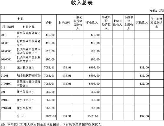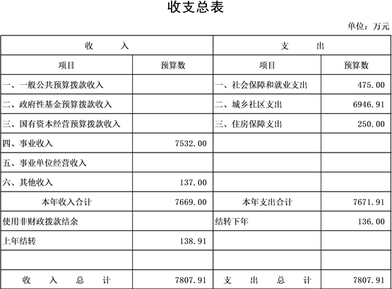 住房和城乡建设部科技与产业化发展中心2021年收支总预算7807.91万元,所有收入和支出均纳入部门预算管理。收入包括:事业收入、其他收入、上年结转。支出包括:社会保障和就业支出、城乡社区支出、住房保障支出。