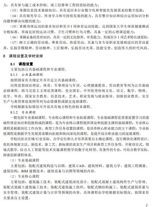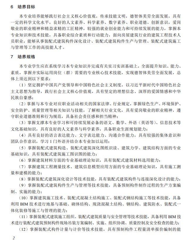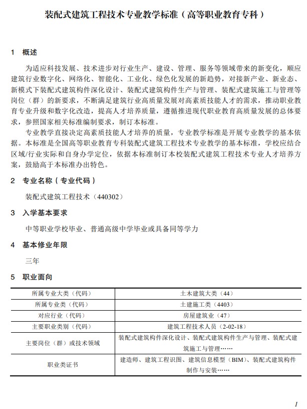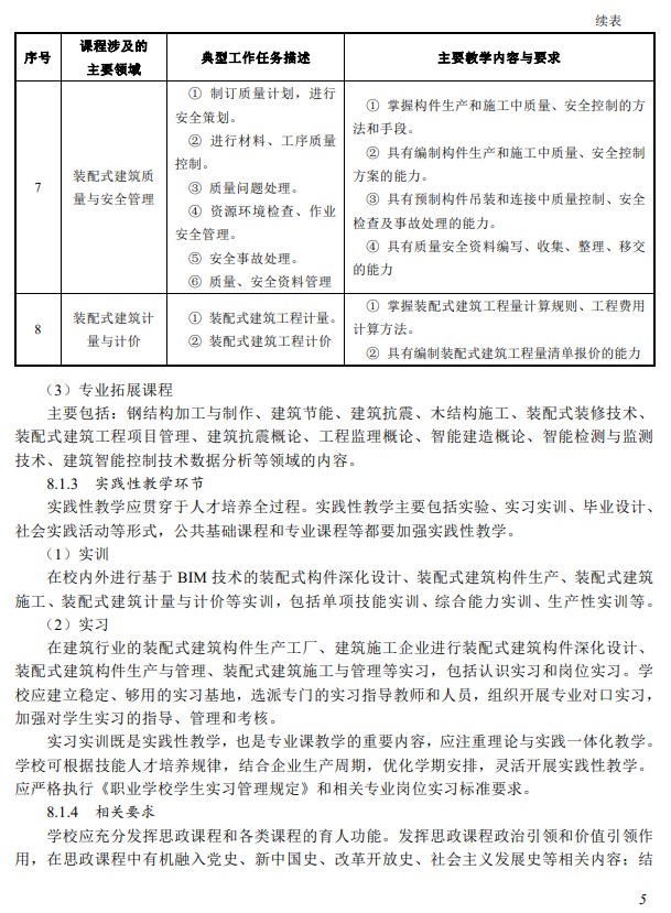 教育部|装配式建筑施工专业教学标准(中等职业教育)2025版全文