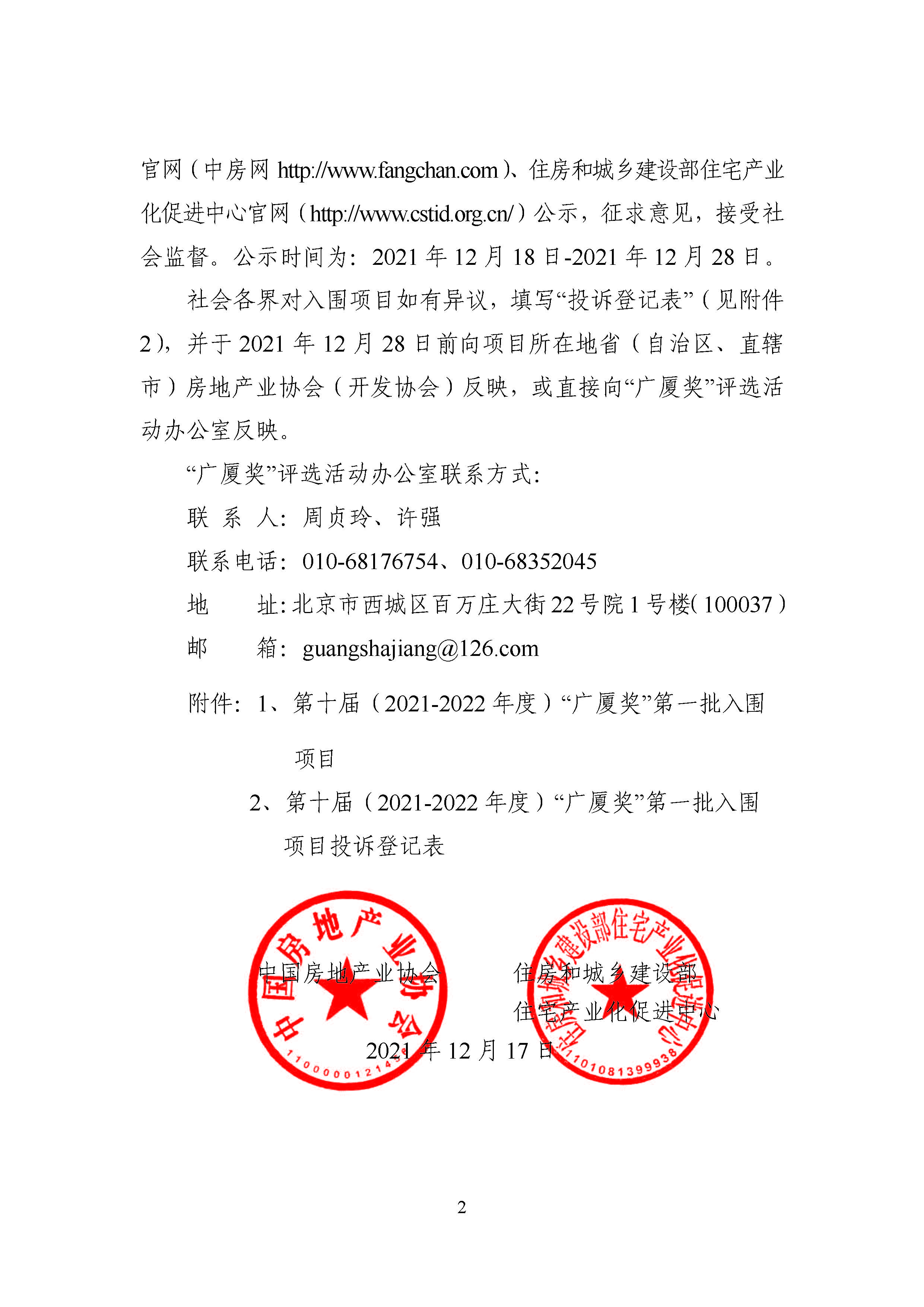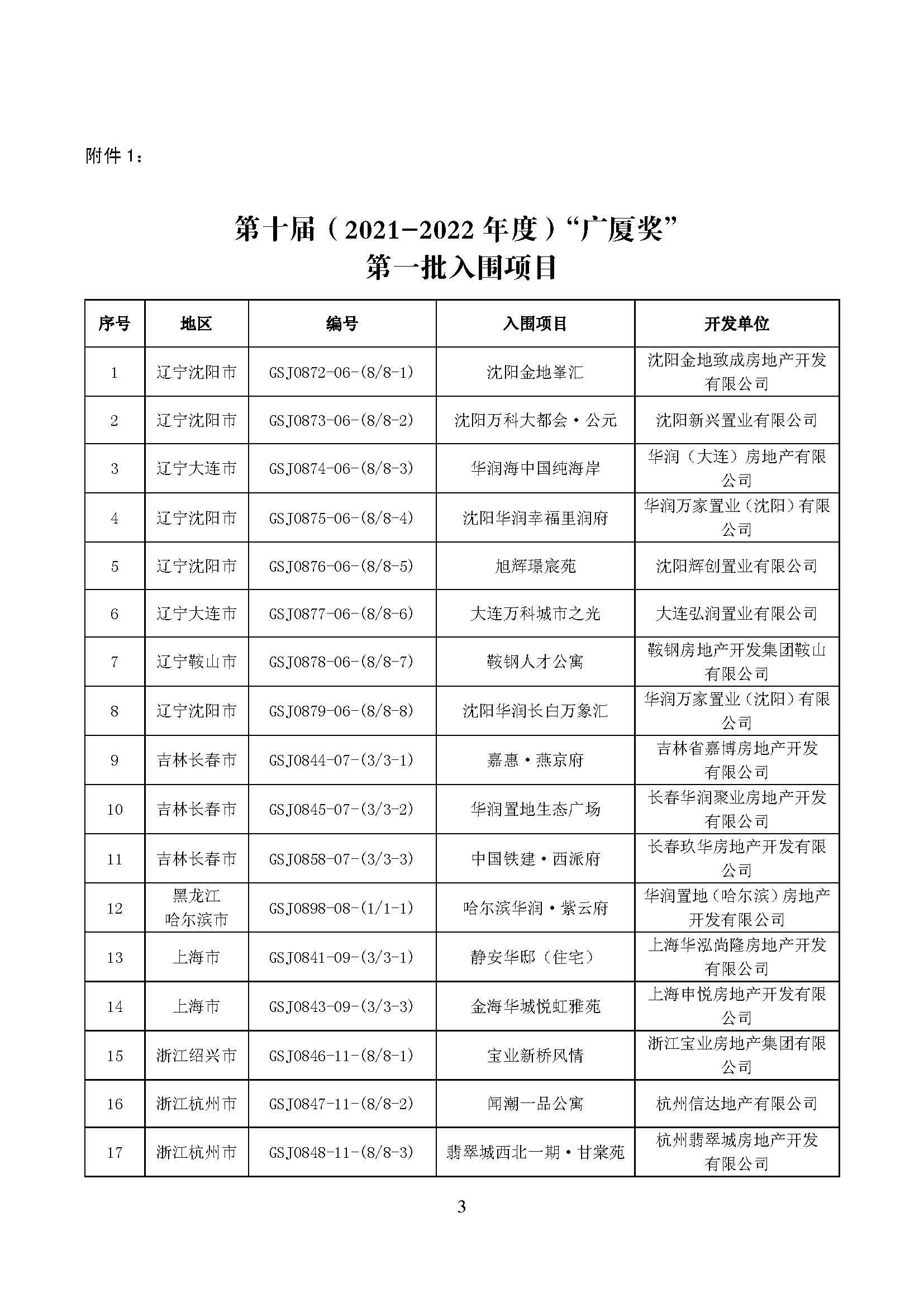 第十届(2021-2022年度)“广厦奖”第一批入围项目公示公告