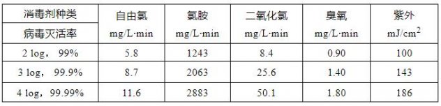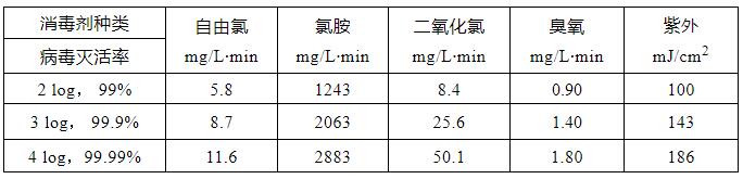 表1. 不同消毒剂病毒灭活的CT值和剂量