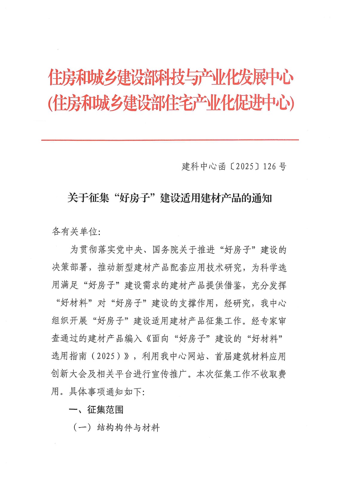 关于征集“好房子”建设适用建材产品的通知