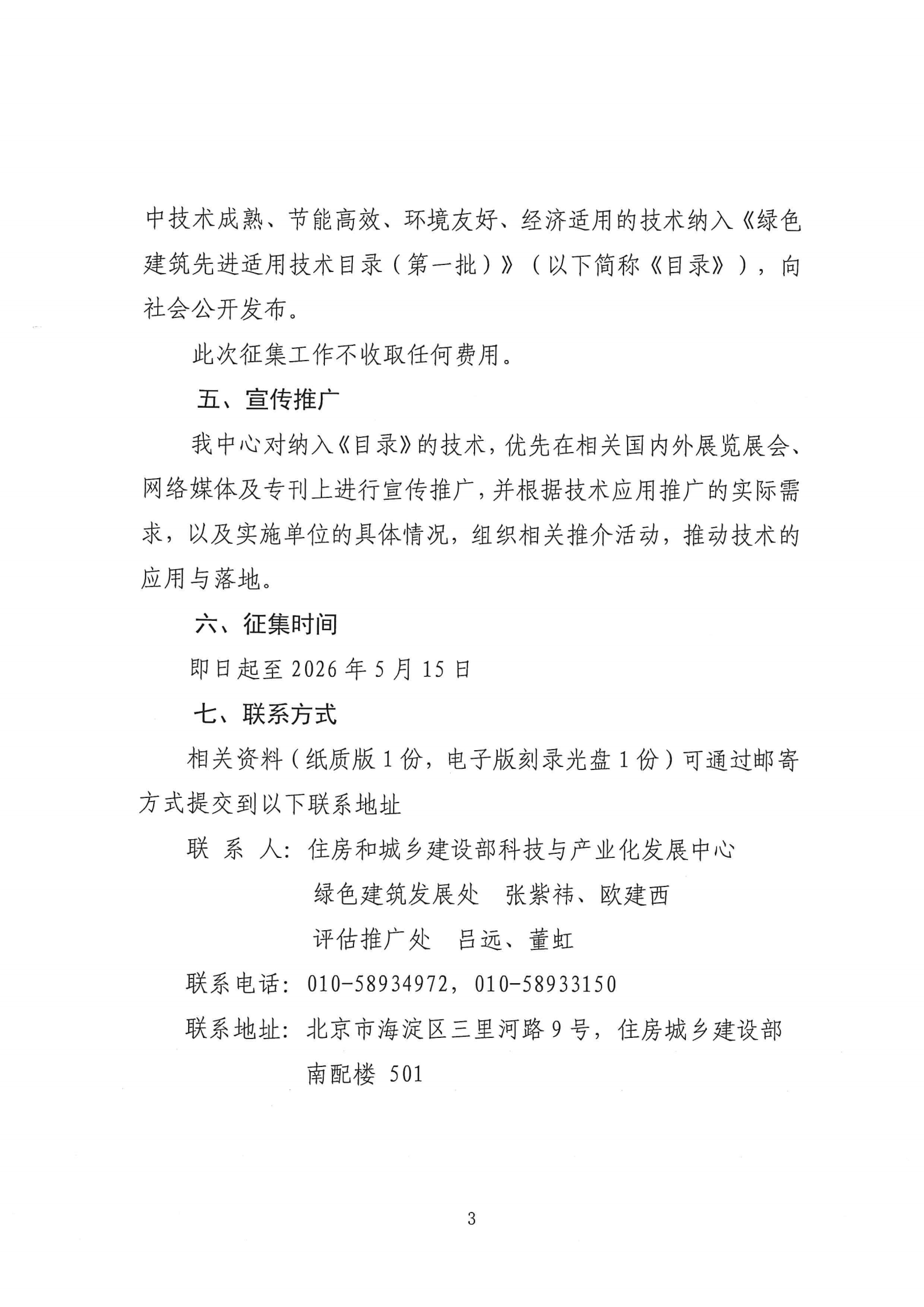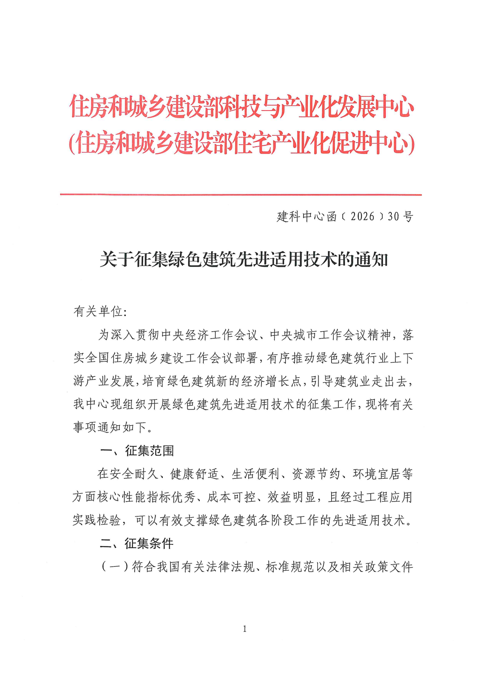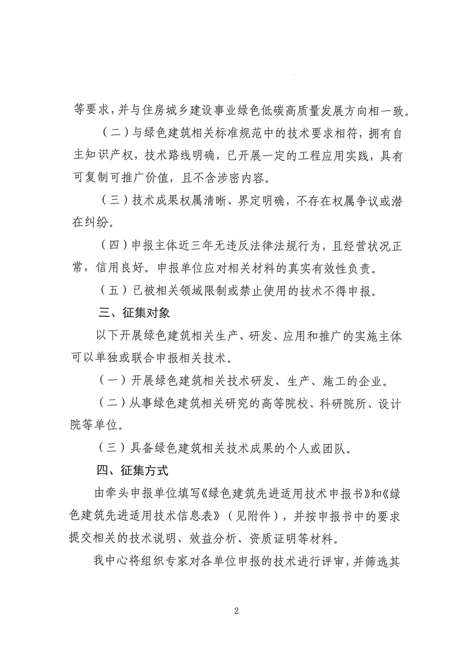 住房城乡建设部科技与产业化发展中心关于征集绿色建筑先进适用技术的通知